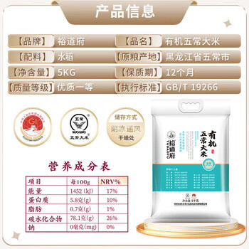 裕道府 有机大米 5kg*1袋