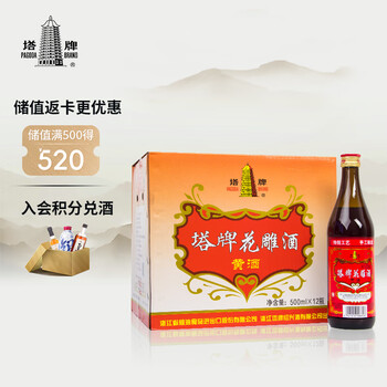 塔牌 陈年花雕酒 半干型 绍兴黄酒 500ml*12瓶 整箱装 加饭酒