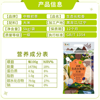 初萃中粮生态长粒香米10斤 当季新米 东北大米 一级粳米