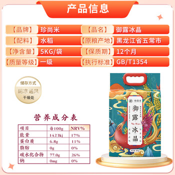 珍尚米东北长粒香大米5kg御露冰晶黑龙江新真空包装粳米10斤 当季新米