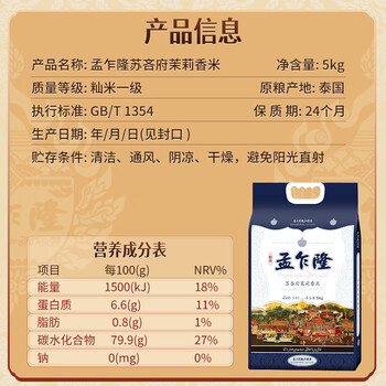 孟乍隆 苏吝茉莉香米5KG ×1袋