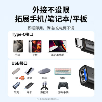 绿联Type-C转换USB转接头OTG数据线适用苹果17/16/15华为手机充电数据线U盘平板笔记本电脑耳机键鼠
