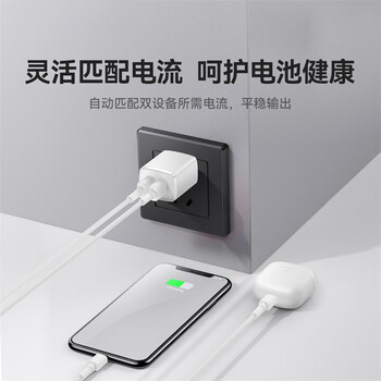 倍思 苹果数据线+10.5W充电器 充电线两条装适用iPhone15/14/13ProMax/Xs/XR/8/iPad/mini