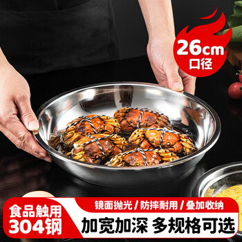 美厨(maxcook)加厚304不锈钢盘碟 盆碟26CM 加宽加深 耐摔 MCWAPD26