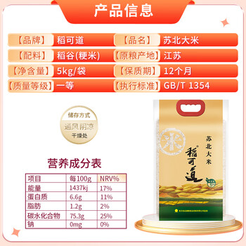 稻可道苏北大米 圆粒大米10斤(5公斤)