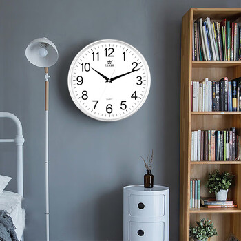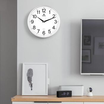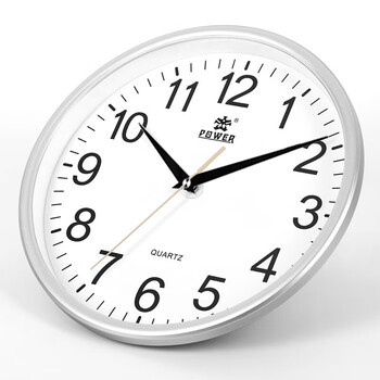 POWER霸王挂钟客厅简约时钟创意家用挂墙免打孔石英钟30cm银色不挑电池