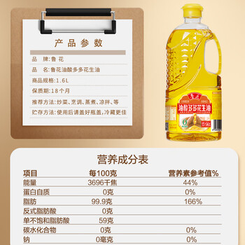 鲁花 油酸多多 5S压榨浓香花生油1.6L*1