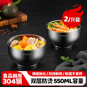 美厨(MAXCOOK)304不锈钢碗 汤碗双层隔热 餐具面碗13CM(2只装)MCWA614