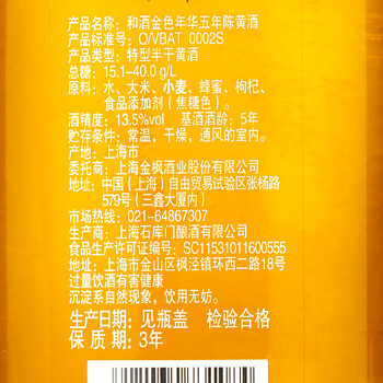 和酒金色年华五年半干型 海派黄酒 500ml*12瓶整箱装上海老酒送礼