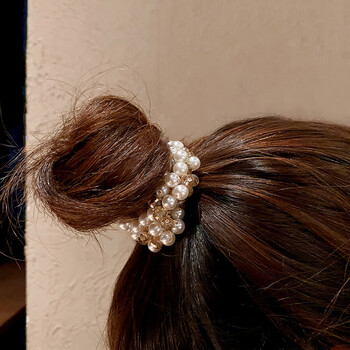缔晶头绳女优雅气质珍珠水晶发圈女士简约百搭扎马尾皮筋丸子头发饰