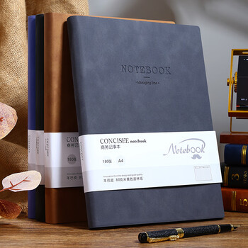 法拉蒙faramon 4本装A4笔记本360页商务笔记本子加厚皮面记事本复古办公文具日记本会议记录本 (黑灰蓝棕)
