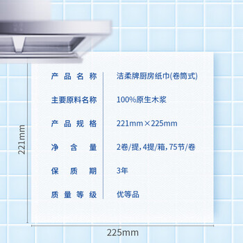 洁柔厨房卷纸75节160g*8卷开学清洁吸水吸油加厚双层一次性厨房用纸
