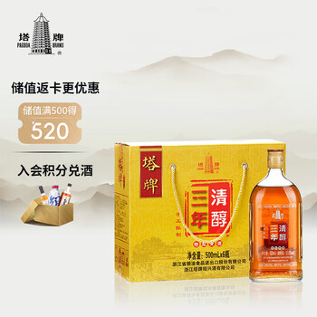 塔牌 清醇三年 半干型 绍兴黄酒 500ml*6瓶 整箱装