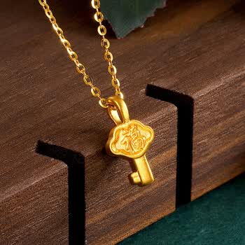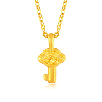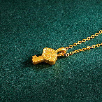 梦金园黄金吊坠足金福锁钥匙挂坠无氰DIY坠子生日礼物