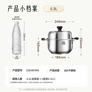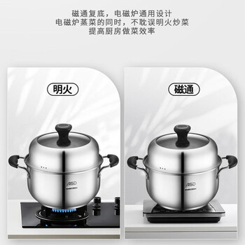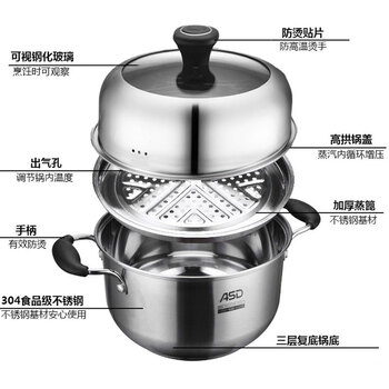 爱仕达(ASD)汤锅304不锈钢单层蒸锅 蒸煮一体炖汤锅24CM电磁炉燃气灶通用ZSB1