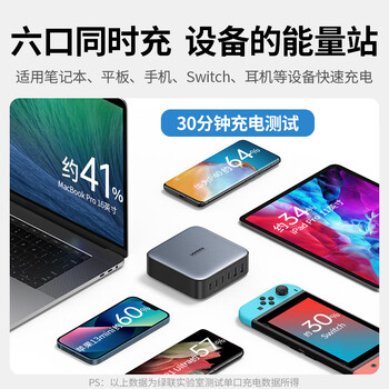 绿联200W氮化镓充电器多口快充头桌面插线板兼容PPS/pd100W适用小米苹果MacbookPro笔记本电脑手机配线