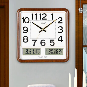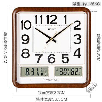 汉时(Hense)挂钟客厅挂墙时钟温湿度万年历挂表家用石英钟表HW26常规版37.3cm