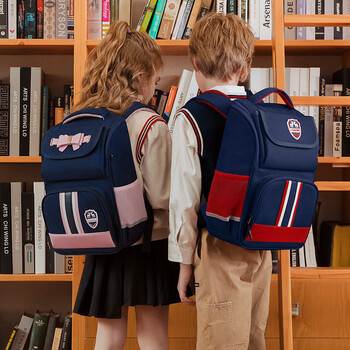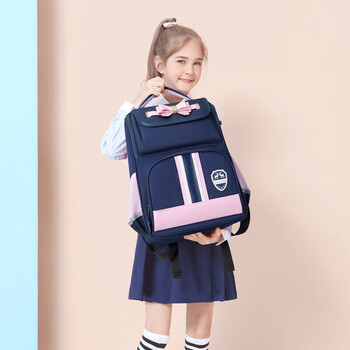 第九城(V.NINE)书包小学生女生护脊儿童书包1-3-6年级英伦风男孩减负双肩背包