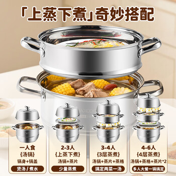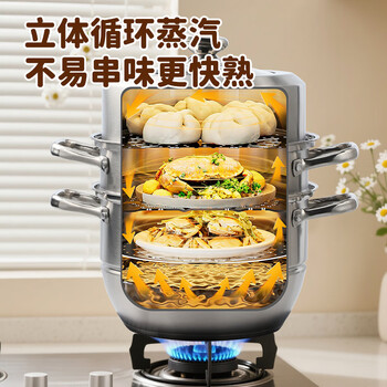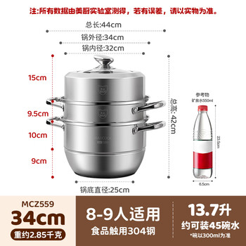 美厨(maxcook)蒸锅 304不锈钢34CM三层蒸锅 加厚复底汤锅燃气电磁炉通用