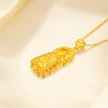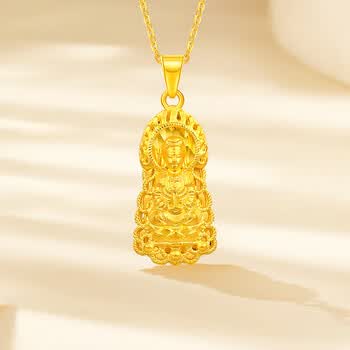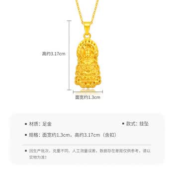 梦金园 黄金吊坠足金火焰观音吊坠3D硬金显大转运珠不含项链