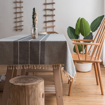 艾薇 棉麻桌布防水防烫餐桌布布艺中式桌旗方形茶几台布140*180岩石灰