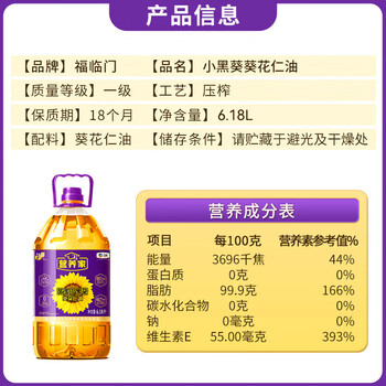 福临门黄金小黑葵葵花仁油6.18L *1