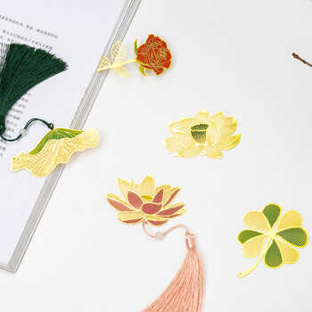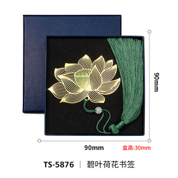 天色彩色叶脉黄铜金属书签礼盒 文创纪念品男女老师教师节生日新年会中国风伴手礼物TS-5878 碧叶荷花