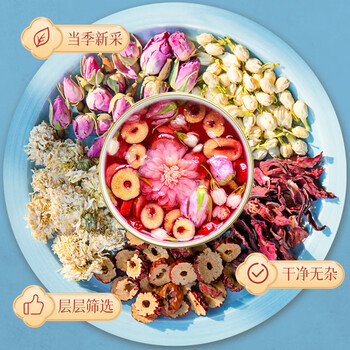 以美养生茶玫瑰洛神花茶150g花草茶菊花红枣茉莉花泡水喝的玫瑰花茶