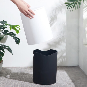 ABEPC 垃圾桶按压式弹盖12L粉色双层家用厨房卧室客厅卫生间 日式简约