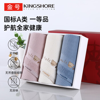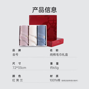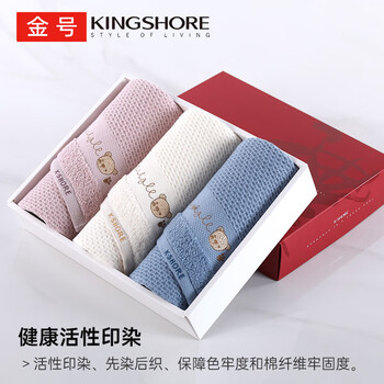 金号毛巾礼盒 A类全棉节日福利毛巾套装 纯棉成人儿童吸水面巾三条