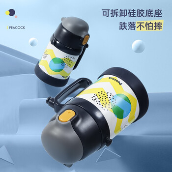 孔雀(Peacock)儿童保温杯带吸管双饮水杯小学生幼儿园宝宝用便携杯