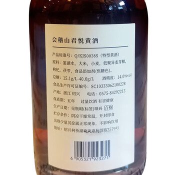 会稽山 君悦 半干 绍兴 黄酒 500ml*6瓶 整箱装