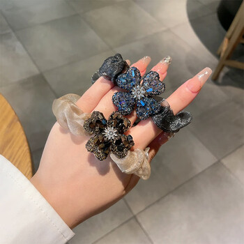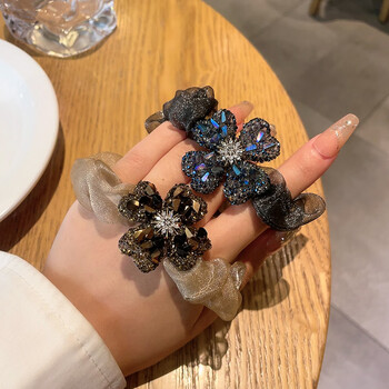 缔晶水钻大肠发圈高级感四叶草头绳复古皮筋扎头发绳生日礼物送女友
