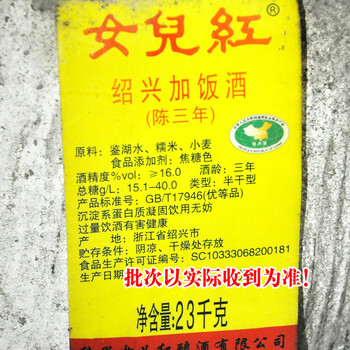 女兒红绍兴黄酒 三年陈加饭酒16度 半干型 23kg 坛装 源头直发