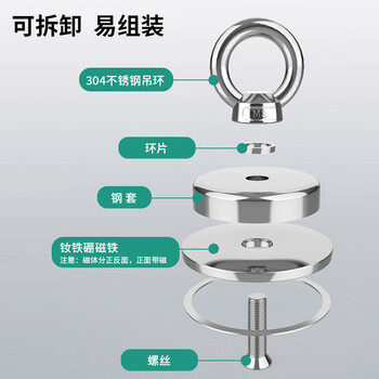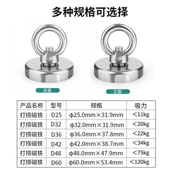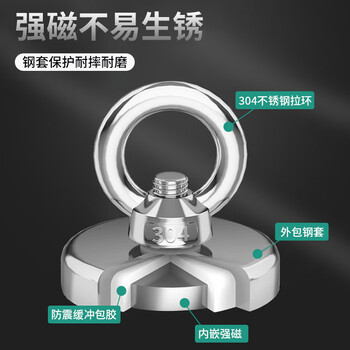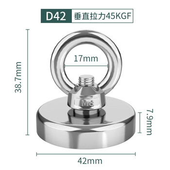 优必利 磁扣强磁吸铁石 打捞磁铁吊环磁钉圆形磁钉磁铁强力磁石 拉力<34kg D42