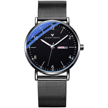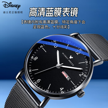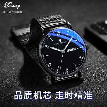 迪士尼(Disney)男士手表时尚潮流双日历石英表初中高中学生青少年手表男黑色钢带