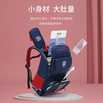 第九城(V.NINE)书包小学生男孩护脊儿童书包1-3-6年级英伦风女生减负双肩背包