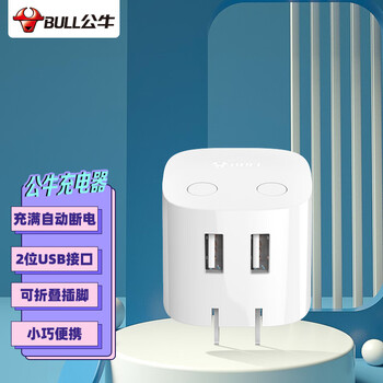 公牛(BULL)U212T自动防过充插头/自动断电充电器/双USB接口总输出2.4A充电头/可折叠插脚