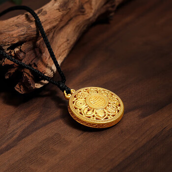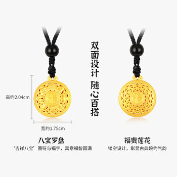 梦金园黄金吊坠足金八宝罗盘莲花吊坠生日送女友