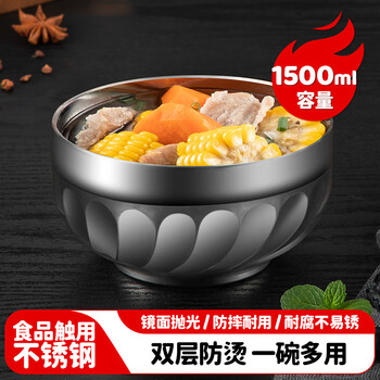 美厨(maxcook)不锈钢碗20cm 大汤碗面碗餐具 双层隔热 MCWA-101