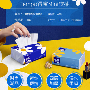 得宝(Tempo)抽纸 Mini系列24包*4层80抽 面巾纸餐巾纸巾 天然无香