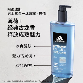 阿迪达斯(adidas)沐浴露男士专用洗发洁面三合一热情600ml薄荷香游泳除氯持久留香