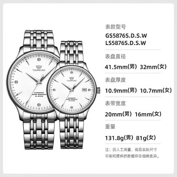 天王(TIAN WANG)情侣手表一对自动机械表钢带防水腕表生日礼物GS&LS5876S.D.S.W