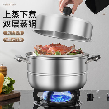 拜格(BAYCO)蒸锅不锈钢30cm二层加厚双层电磁炉燃气灶多功能家用蒸锅 BG50008
