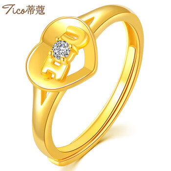 蒂蔻(Tico)时尚足金999爱心形黄金戒指女3D硬金桃心活口女戒指环生日礼物