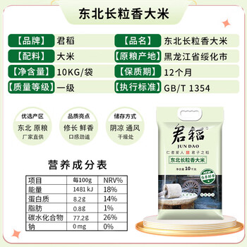 君稻 长粒香大米10kg 东北大米20斤 京东自营 年货送礼