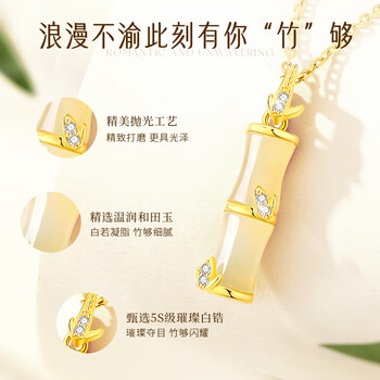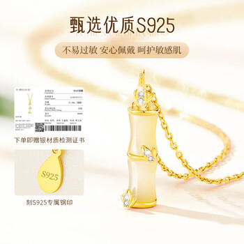 珍尚银中国黄金竹节和田玉项链女款生日礼物2026新款轻奢高级送女友S925