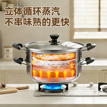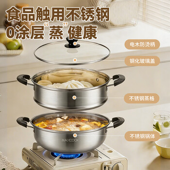 美厨(MAXCOOK)二层蒸锅 30cm大容量火锅汤锅加厚不锈钢多用锅 燃气灶电磁炉通用