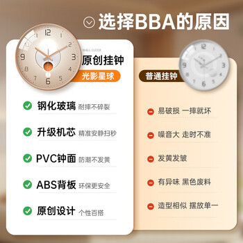 BBA 挂钟北欧装饰轻奢钟表客厅家用时钟简约挂表挂墙玫瑰金30cm