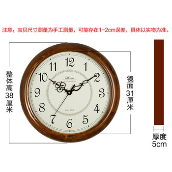 汉时(Hense)复古实木挂钟客厅静音时钟中式挂表石英欧式钟表挂墙HW18棕色38cm